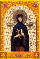 Преподобномученица Евгения, родом римлянка, жила в Александрии, куда ее отец, Филипп, был послан императором Коммодом (180 - 192) в качестве наместника Египта. Евгения получила прекрасное образование и отличалась добрым нравом и красотой. Многие знатные юноши добивались ее руки, но вступать в брак она не хотела. Познакомившись с Посланиями апостола Павла, она всей душой устремилась к христианству и тайно от родителей, в сопровождении своих двух рабов, Прота и Иакинфа, переодевшись в мужскую одежду, удалилась в мужской монастырь. Там она со своими рабами и спутниками приняла святое Крещение от епископа Элия, которому было открыто о ней в видении, и он благословил ее подвизаться в монастыревобразеинокаЕвгения.СвоимиподвигамисвятаяЕвгениястяжаладарисцеления.
